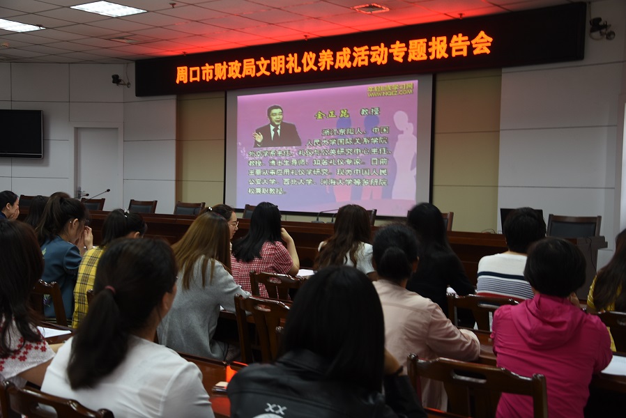 今年5月份以来,为全面加强机关文明建设,进一步提升广大干部职工文明素质,巩固全国文明单位创建成果,更好地促进财政改革发展工作,周口市财政局积极开展了“文明礼仪培养实践”活动。该活动以“讲文明、守礼仪、树新风”为主题,以“物要整洁、人要精神、谈吐文雅、和谐相处”为基本原则,大力弘扬中华民族传统美德,充分体现时代精神风貌,以文明礼仪提升机关干部文明素养,着力塑造广大干部职工讲文明、知礼仪、重诚信、团结友善、热情好客、亲和融洽的良好形象。